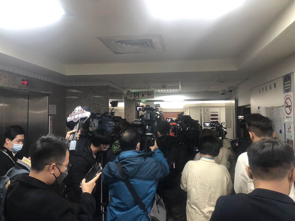 檢調搜索新竹市長當選人高虹安的立法院辦公室,大批媒體在外等候。(姚志平攝)