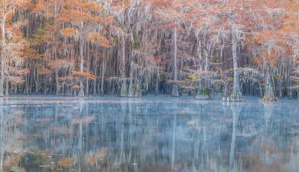 占地8.5平方公里,這座州立公園生長著一大片落羽松。這種濕地樹除了適合水岸造景之外,由於結構粗、耐腐蝕,是適合造船、做家具和當成建材的良好木材,因此當地打從18世紀開始,就廣泛開採採伐。
